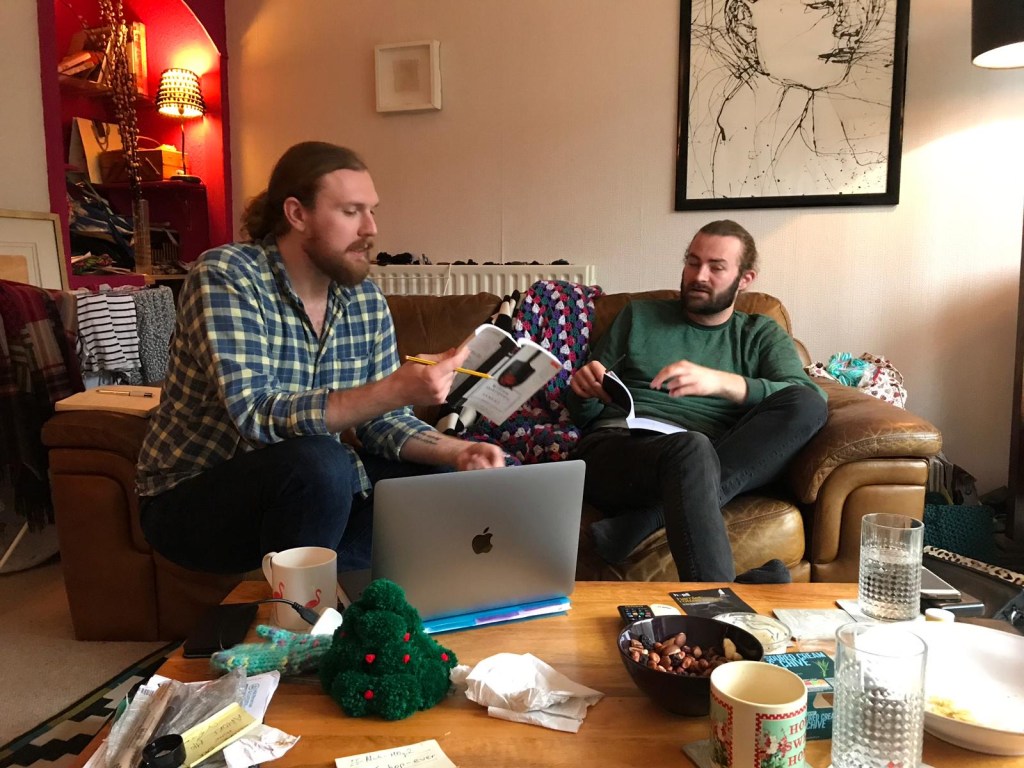 At this point I must mention that we had a bit of a personnel change within the project. Due to Nigel being in Manchester throughout the entirety of December working on a Christmas show, and his and Marissa’s baby being due in February, it was absolutely right that he step aside for this project. It was ambitious and a little bit naive on both our parts to think that we could go ahead as normal. We had already cast the superb Amy Fleming for the role of our third player, and when the decision was made for Nigel to step aside it made complete sense that his replacement should be Will Bridges, who offered so much expertise and work in creating Macbeth: A Tale of Sound & Fury with us. Not having Nigel in the room was going to be a challenge, absolutely, as he brings such an energy and theatricality and analysis to the text, but in lieu of him being there, I knew that Will and Amy would more than make up for his absence.